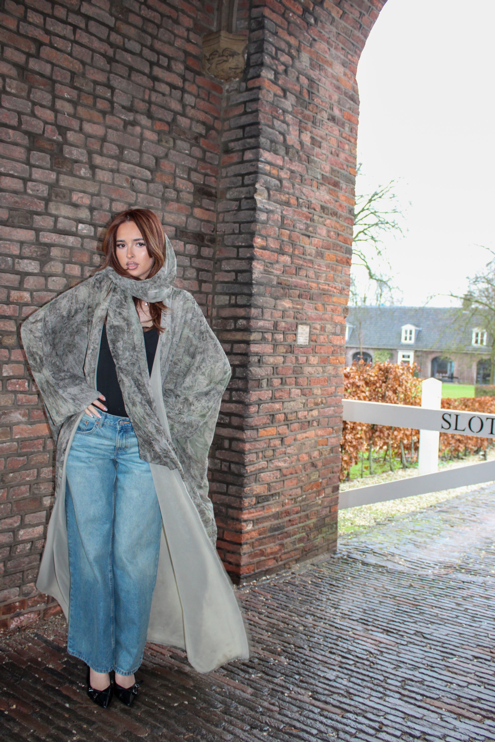 Chiffon stof. Licht, ademend en soepel vallend. Deze stof staat bekend om haar elegante uitstraling en fijne structuur, waardoor de abaya een luchtige en stijlvolle look krijgt, geschikt voor elk seizoen.
